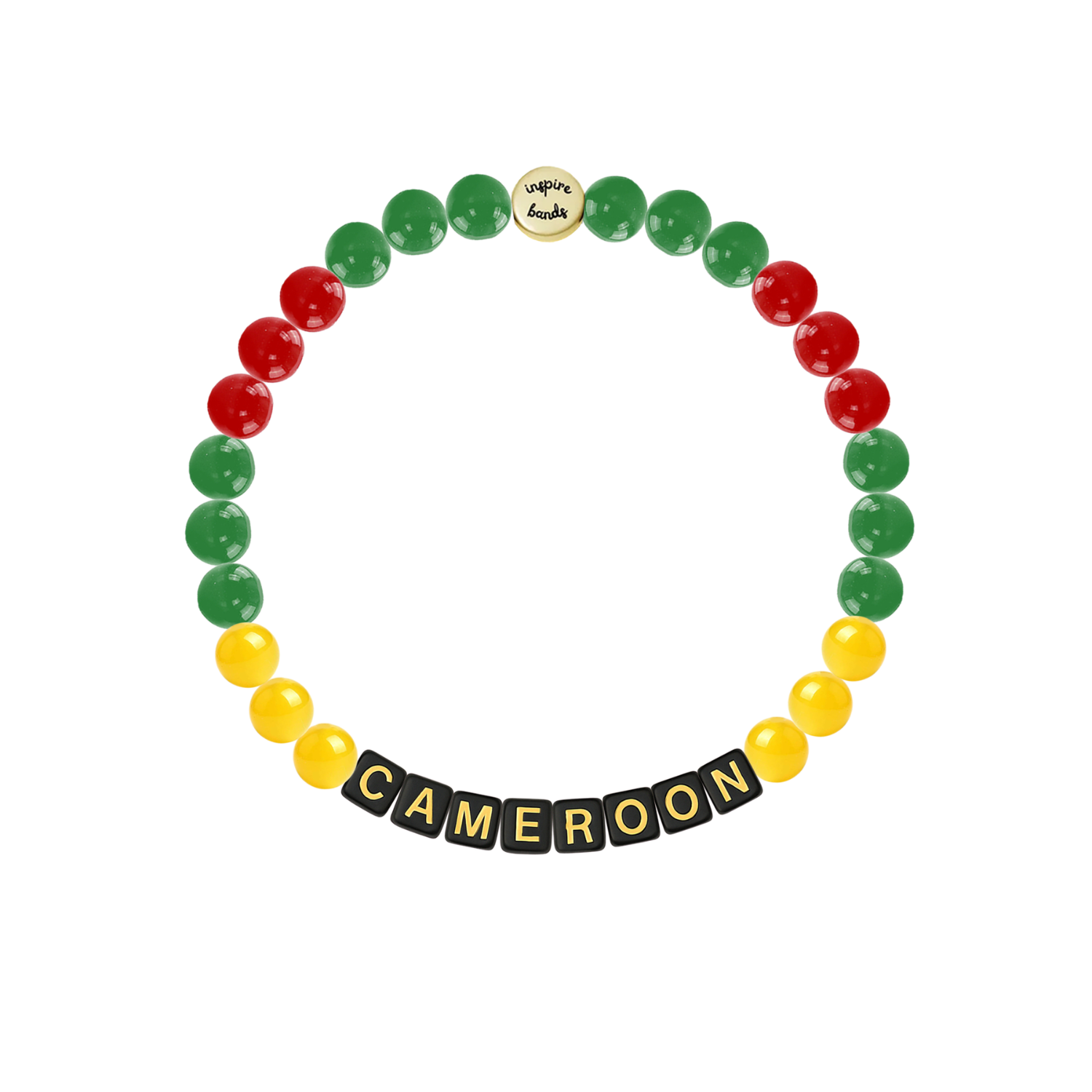 Channel the strength and vibrance of Cameroon with this bracelet inspired by the nation’s bold green, red, and yellow flag.