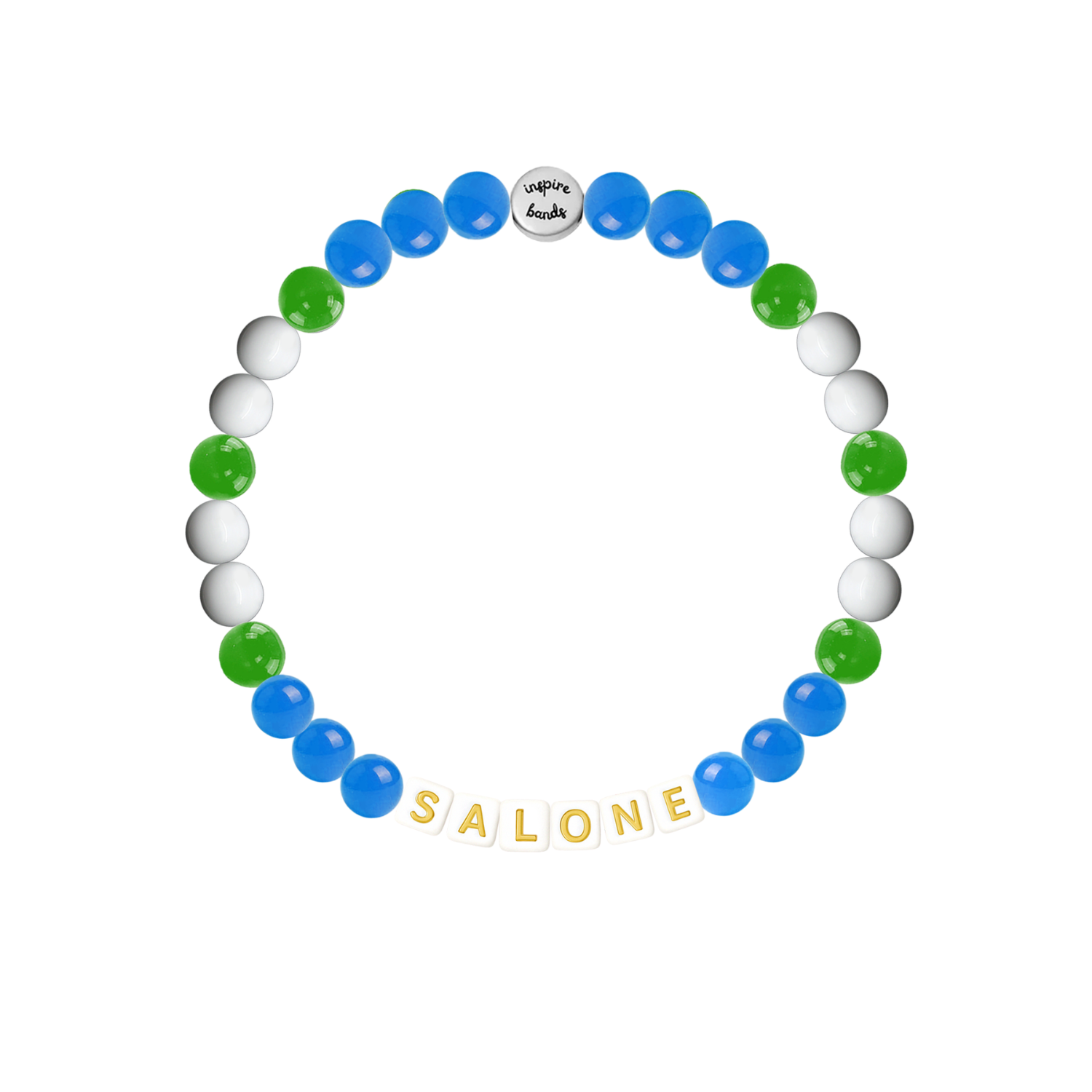 Celebrate the pride of Sierra Leone with this bold bracelet featuring the vibrant blue, green, and white of the Sierra Leone flag. Each color bead symbolizes peace, growth, and unity—core values at the heart of Sierra Leone’s culture.
